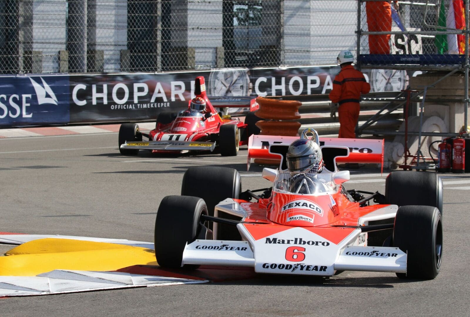 Headline sponsor Chopard, in partnership with the Porsche Museum, provided a 1960 718 and 1962 Type 804 for lunchtime demonstrations, by six time Le Mans winner Jacky Ickx , and fellow brand ambassadors, Romain Dumas and Brendon Hartley. Accompanied by double Monaco Grand Prix winner Mark Webber; the shrill of the 804’s, flat eight-cylinder air cooled engine, created much attention, alongside members of the Automobile Club du Monaco’s collector’s car display….. all observed from the brand new ACM Race Control building, opposite the pit-lane exit.