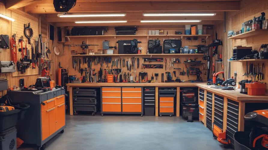 LED strip lights or panel lights are particularly effective, as they produce strong illumination without excessive heat or energy use. Adding task lighting above a workbench or near storage areas ensures you can focus on specific jobs without straining your eyes.